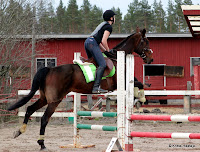 70/80cm luokassa perusradalla Antti sitten kielsi yhdelle esteelle, mikä oli Minnalle lähinnä näpäytys vaan että pitää siellä selässä töitäkin tehdä eikä vain matkustaa ;)