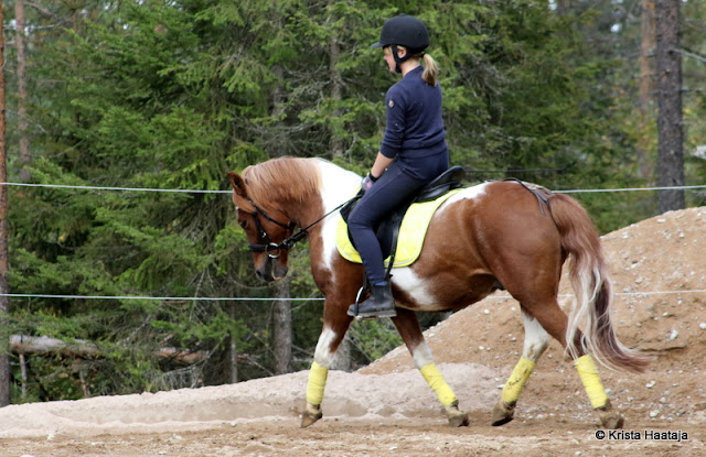 Kyllä teki terää olla huudon alla, tästä täytyy ottaa nyt taas tapa jotta en pääse ihan puskastuun liiaksi. Tehtiin vähän avoa ensin käynnissä ja sitten ravissa. Minusta tuntu että raviosassa olin itte ihan hukassa mutta kun tein asiat itse oikein niin johan se teki Taakeki. Kyllä me tästä taas yhessä noustaan, tai no, mie nousen ja Taake opettaa haha! Mutta tästä on ainaki tosi hyvä jatkaa taas. Valmennuksia lisää!
