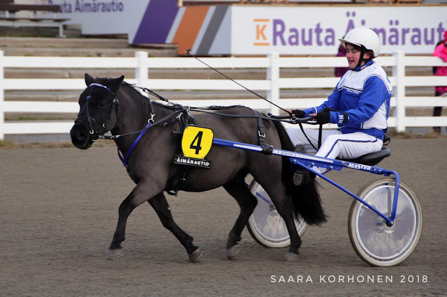 Passi napattiin kotoa kyytiin ja matka pääsi alkamaan uudemman kerran. Perillä oltiin ajoissa ja Aurora kerkesi hyvin Maileria vähän kävelyttää ja me Riikan kanssa käytiin katsomassa radan kuntoa. Se näytti ihan hyvältä. Maileri kengitettiin hokka kenkään vasta tiistaina muutamaa päivää ennen starttia siis. Kerkisin kotona ajamaan sen kerran hokeilla ja totesin että ihan hyvin hölkkii.